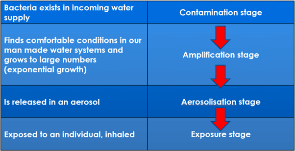 The main factors that increase Legionella risk in any water system (referred to as the ‘causal chain’) are:
